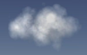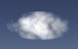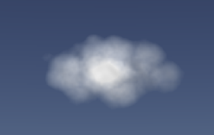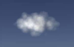 A cumulus cloud billboard positioned in the 3D scene, that is created and rendered using a CloudCollection.